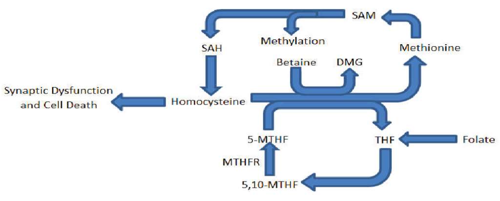 Previous research has already begun to look in some of these regions with regards to neurogenesis and homocysteine levels. Research conducted by Jadavji et al. in 2012, used adult MTHFR knockout mouse models to test the association between neurogenesis and hyperhomocysteinemia-mediated pathologies. The results showed that homozygous knockouts for MTHFR had severely decreased cognitive functioning in object recognition tests, while apoptosis levels in the dentate gyrus were also elevated in the same genotype (Jadavji et al., 2012). This would suggest that without cell replacement in the dentate, cognitive function is greatly reduced, as a result of elevated homocysteine.